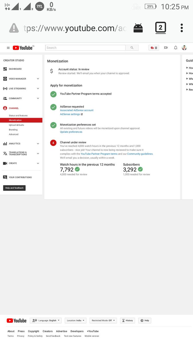 still Channal is not Reviewed get any action on it i have 3.4k sub and 7k hours https://www.youtube.com/channel/UCrwo-c-efK8HgmBD3-GUh1g …pic.twitter.com/cqNGK4W0Hl