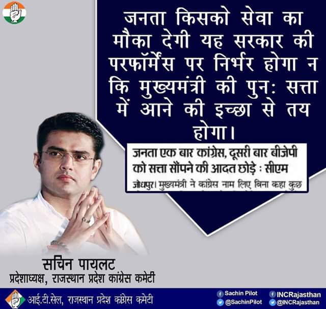 @VasundharaBJP को सत्ता हाथ से जाती दिख रही है तो जनता पर ही नाराजगी जाहिर करने लगी हैं - जनता आपके 5 साल के कामकाज से निराश होकर मन बना चुकी है लोकतंत्र का सम्मान कीजिए और जनताके फैसले का इंतजार कीजिए@INCIndia@INCRajasthan@kumari_selja@avinashpandeinc@dgurjarofficialpic.twitter.com/xccwy72akR