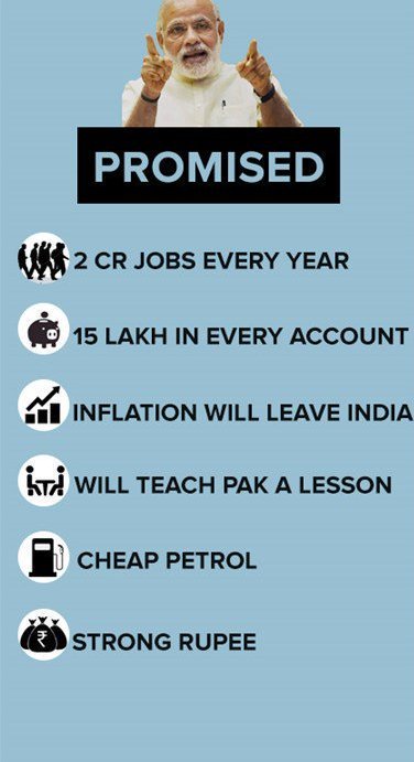 #WhereAreTheJobs is not only question, citizens are also searching for Vikash ?? 15 lacs ?? Lok pal ??? 10 head ???? Achhe din ???? Laal aankh ???? Kaala dhan ?????? Clean Ganga ????? Nari Samman?.???? Corrupts in jail ??????? Dollar and Rupee equal???? And many more....pic.twitter.com/bwR038WF62This media may contain sensitive material. Learn more