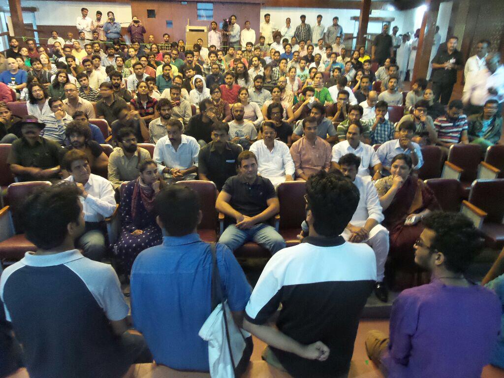 @INCIndia VP@TimesNow @OfficeOfRG: At FTII interacting with protesting students pic.twitter.com/oWUNxorUNs”