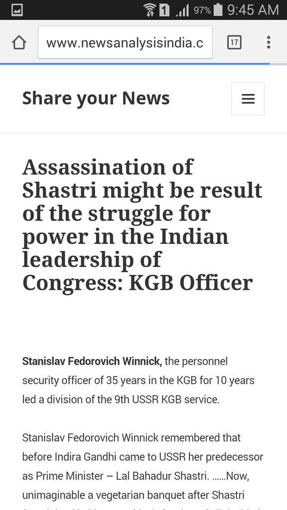 @JhaSanjay & ask him to apologise on TV debates http://www.newsanalysisindia.com/post/Assassination-of-Shastri-might-be-result-of-the-struggle-for-power-in-the-Indian-leadership-of-Congress-KGB-Officer.aspx#.UupiqT2SxWI …pic.twitter.com/IbNt6dknHL