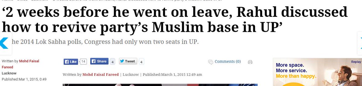 4/4 Rahul hd reportedly discussed w Masood y muslim community hd deserted Cong. http://indianexpress.com/article/cities/lucknow/2-weeks-before-he-went-on-leave-rahul-discussed-how-to-revive-partys-muslim-base-in-up/ … @OfficeOfRGpic.twitter.com/Qw9dpvvDfF