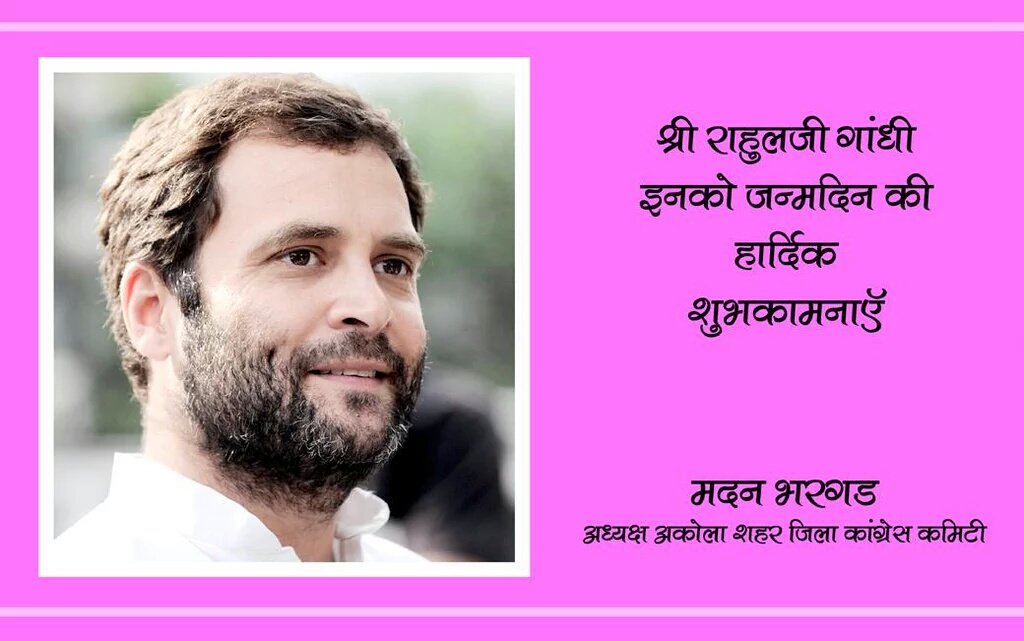 अखिल भारतीय कांग्रेस कमेटी के उपाध्यक्ष माननीय राहुल गांधी जी को जन्मदिन की हार्दिक बधाई और शुभकामनाये जय कांग्रेस