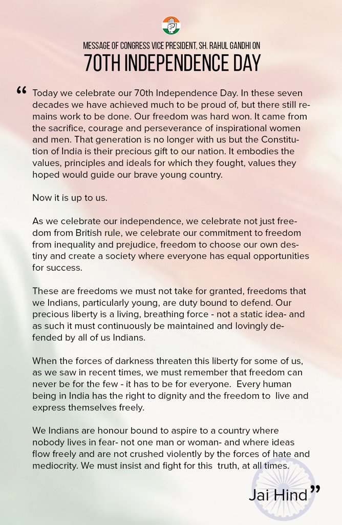 #IndependenceDayIndia तो भक्तो के लिए हे ,, वरना Cong तो आज भी 10जनपथ की गुलामी कर रही हे । @OfficeOfRGThanks. Twitter will use this to make your timeline better. UndoUndo