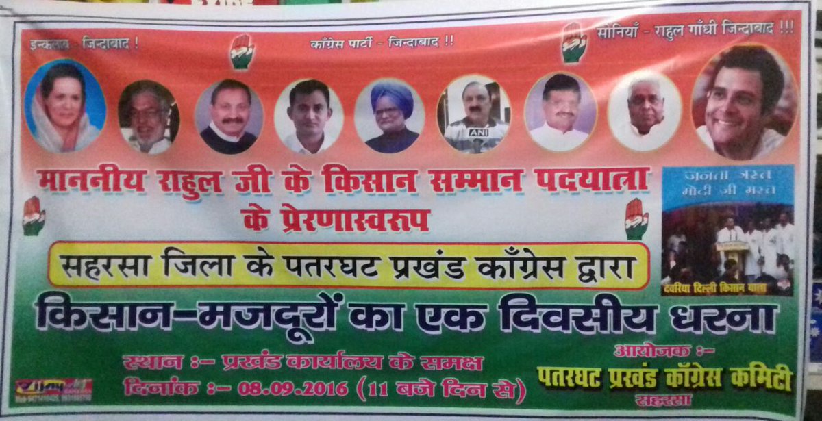 Inspired by Honble Rahulji's Kisan Yatra Saharsa(Bihar)congmen orgnizn oneday dharna raising Kisan issupic.twitter.com/P4FmjqGTD0