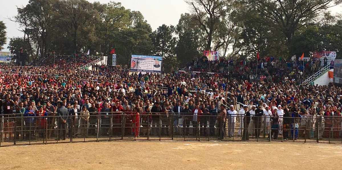 colourful sea of locales out in all their finery eager to listen see meet make your rallies & speeches an extended family event