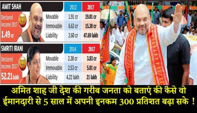 5 साल में @AmitShah जी आपकी संपत्ति 300 प्रतिशत बढ़ी,गरीबों को भी बताए की कैसे की जाए दिन दुगनी रात चौगुनी कमाई??@narendramodi @INCIndiapic.twitter.com/wqvh4xJGWG