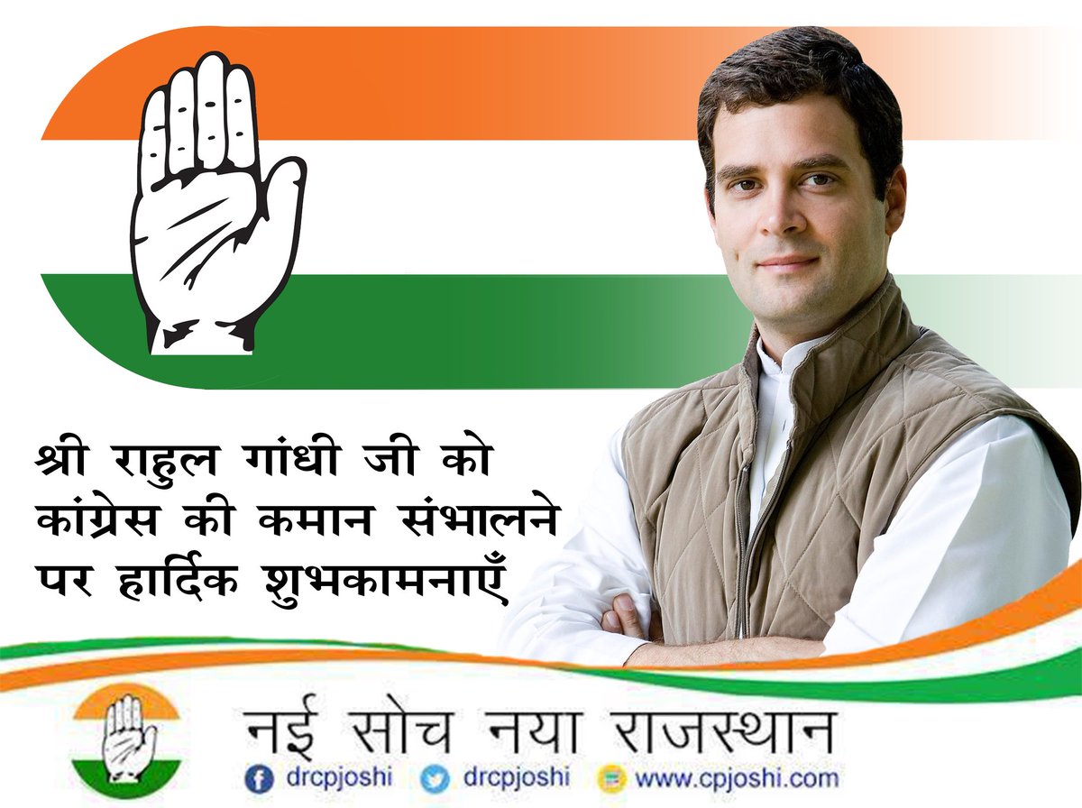 राहुल गांधी को कांग्रेस अध्यक्ष बनने पर बधाई। राहुल जी अब आपको और कांग्रेस को खुलकर भाजपा और संघ के खिलाफ बोलना चाहिए अगर आप इस देश का लोकतंत्र बचाना चाहते है तो ।