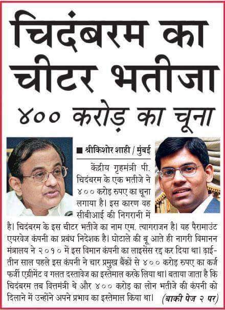 कांग्रेसी छोटा मोदी छोटा मोदी चिल्ला रहे थे और उपर वाले की विडंबना देखिए गिरफ्तार छोटा चिदांबरम हो गया है...उपर वाले के यहाँ देर है अंधेर नहीं..!!