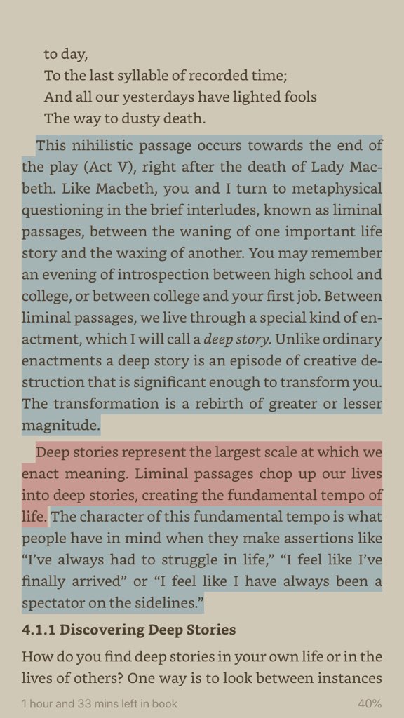 "Between liminal passages, we live through a special kind of enactment ... a deep story. Unlike ordinary enactments a deep story is an episode of creative destruction that is significant enough to transform you. The transformation is a rebirth of greater or lesser magnitude."pic.twitter.com/T2pfUgEOgN