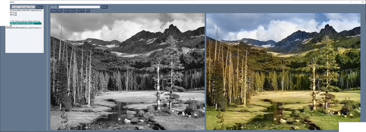 #PySimpleGUI demo that colorizes photos and your webcam video in realtime. https://www.reddit.com/r/Python/comments/ege02j/a_photo_and_webcam_deep_learning_colorizer_in/ … It's amazing what a few lines of Python code is capable of doing. It uses only Numpy and OpenCV. GitHub - https://github.com/PySimpleGUI/PySimpleGUI-Photo-Colorizer …pic.twitter.com/8JT2tlqoOW