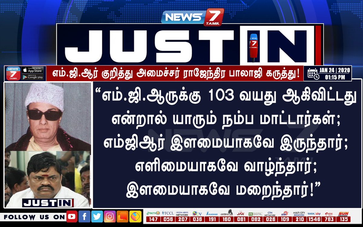 #JUSTIN எம்.ஜி.ஆர் குறித்து அமைச்சர் ராஜேந்திர பாலாஜி கருத்து! http://www.ns7.tv |#MGR |@RajBhalajiofflpic.twitter.com/aNseIDJOTG