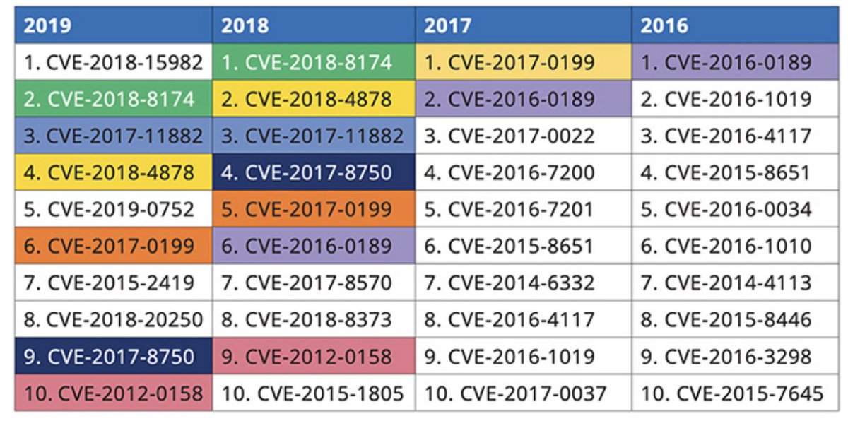 #cybercriminals consists of "two vulnerabilities in Adobe Flash Player, four vulnerabilities affecting Microsoft’s IE browser, three MS Office flaws and one WinRAR" https://www.helpnetsecurity.com/2020/02/06/most-exploited-vulnerabilities-2019/ …#malware#cybersecurity#infosec via@helpnetsecuritypic.twitter.com/GnHyA3KMLP