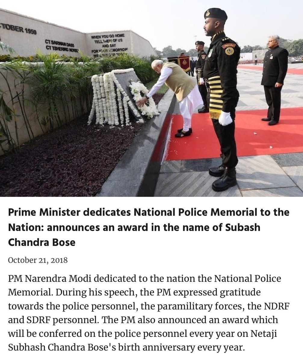 Prime Minister Shri @narendramodi dedicates #NationalPoliceMemorial to the Nation: announces an award in the name of Subash Chandra Bose