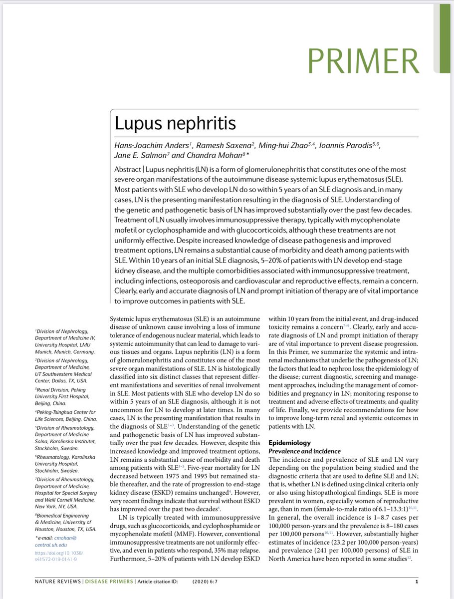 Fresh from the press: "Lupus nephritis" in Nature Reviews Disease Primers https://www.nature.com/articles/s41572-019-0141-9 …