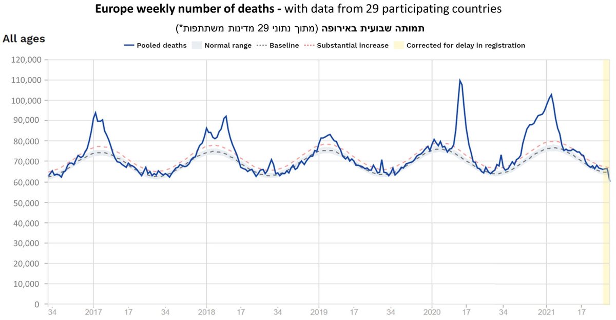 EUROMOMO update: Mortality in Europe & Israel is normal since February 2021. At that time, only ~1.2% of the European population were fully vaccinated, while here in Israel, ~31.3% were fully vaccinated. Why? Seasonality & natural exposure. Vaccines? A negligible effect at most.pic.twitter.com/0ilfn5kB1x