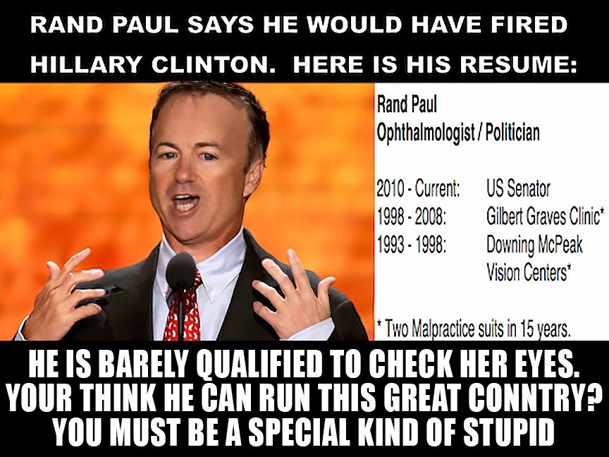 @RandPaul Take no prisonersThanks. Twitter will use this to make your timeline better. UndoUndo