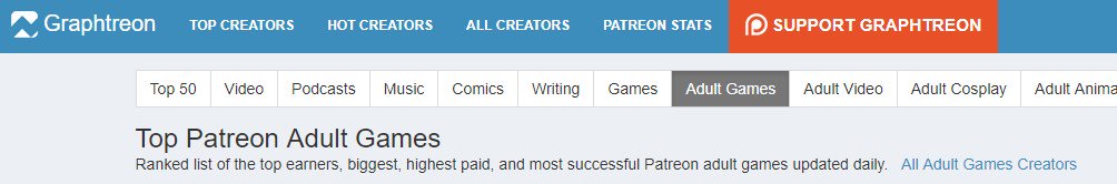 graphtreon, a site that lists top earning patreons, has a whole CATEGORY for "adult games" and boy they are RAKING IN CASHpic.twitter.com/H3bnePi7Hs