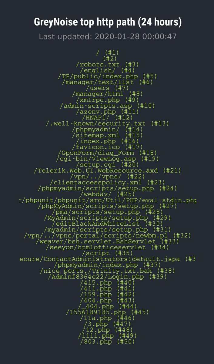 #infosec #threatintel - @greynoiseio top http scans for today.pic.twitter.com/upyMAzE9g7