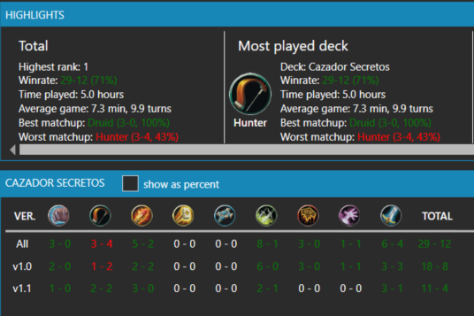 Leyenda de nuevo!!! Este Cazador de Secretos ya no es muy secreto, @ViciousHS lo destacó como el Meta Breaker de la semana y sin dudas lo fue. Su gran capacidad de juego contra Pícaro fue gran parte de ese 71% de WR! Les dejo la lista hay lugar para mejorarlapic.twitter.com/PHTmlUOb8q