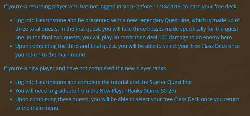 Aquí tenéis las condiciones para conseguir el deck gratis. Fuente: Blizzard.pic.twitter.com/PICFZ9ajtZ