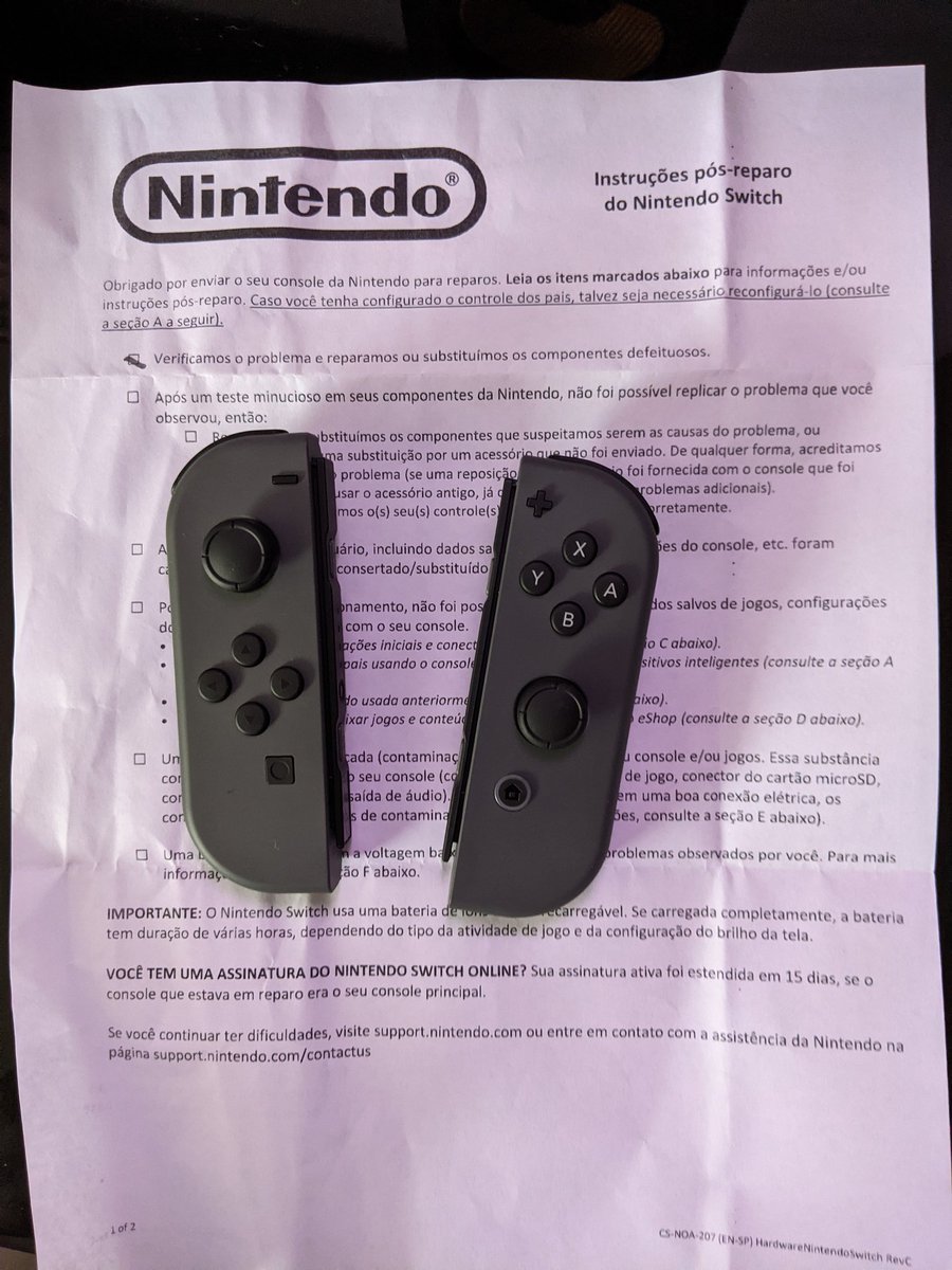 Mano, suporte BR da Nintendo é foda demais. Comprei um switch usado, comprado na Europa, uma das primeiras versões. É fato sabido que os joycons dão problema. Eles trocaram, na faixa, por dois novinhos, não precisei nem apresentar nota fiscal. Não paguei nem o frete. Sensacional.pic.twitter.com/6FibEN1AAi