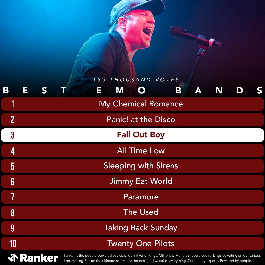 #Ranker voters. Do you agree? Click the link to vote.#Emo#music#FallOutBoy#MyChemicalRomance#PanicattheDisco#Top10 https://www.ranker.com/list/emo-bands-and-musicians/music-lover …pic.twitter.com/iKgSEt3I00