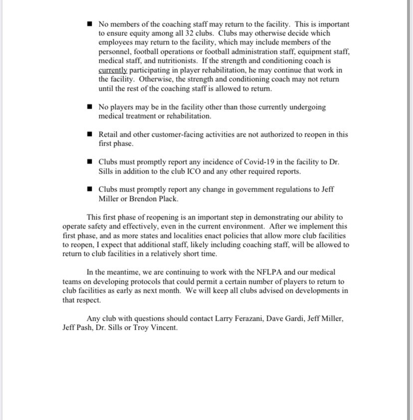 NFL team facilities can begin reopening as soon as Tuesday.https://twitter.com/RapSheet/status/1261416294777106432 …