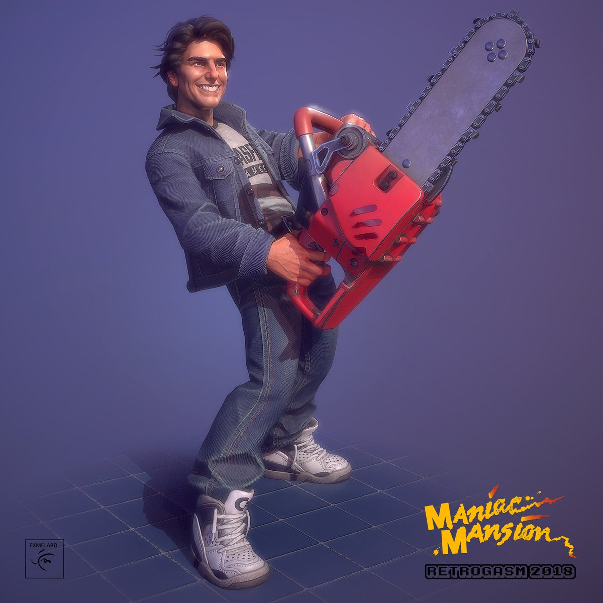"Dave is really happy to have found the chainsaw in the kitchen..." Maniac Mansion - Retrogasm 2018, by FX Melard - http://bit.ly/2IlPpK1 Textured with