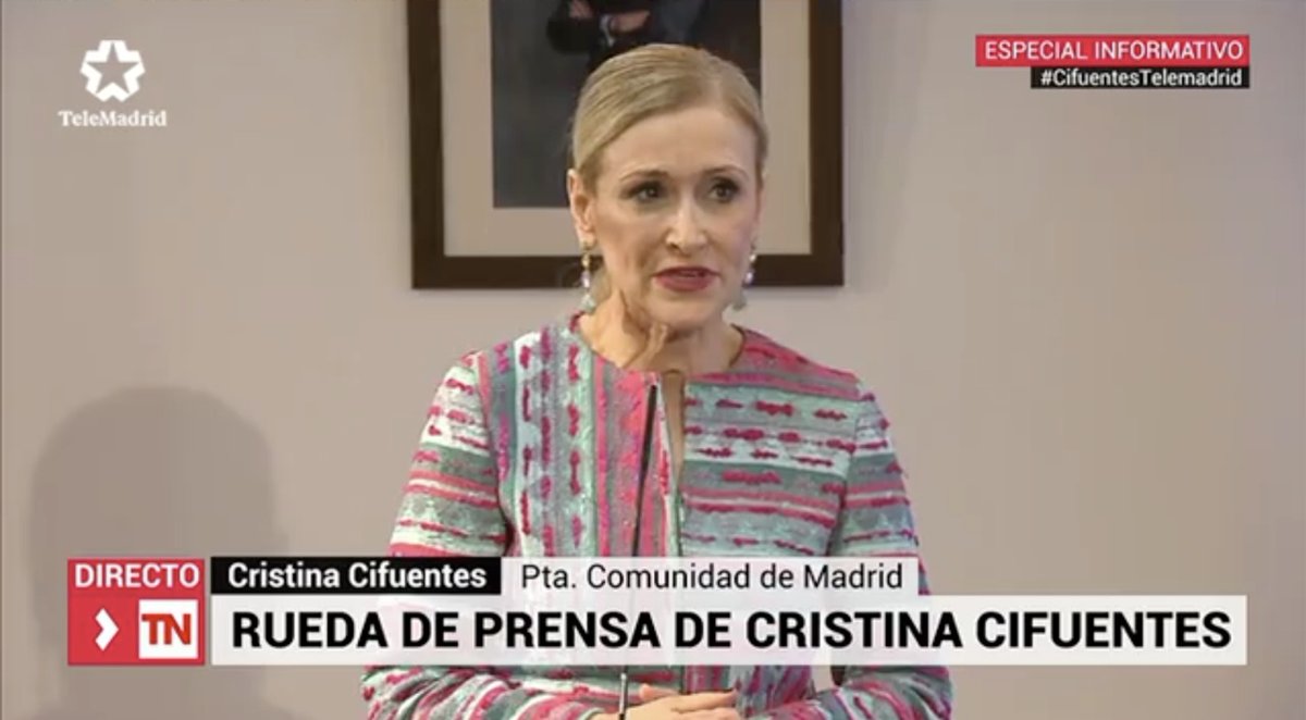 “¿Por qué voy a dimitir si he actuado de la forma correcta? Cristina Cifuentes