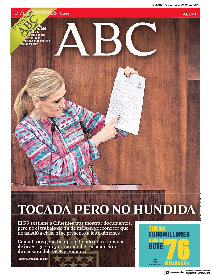 No sé qué es peor si las penosas explicaciones de Cifuentes que no aclaran nada, o la nula reacción de Ciudadanos. Y aquí no pasa nada.