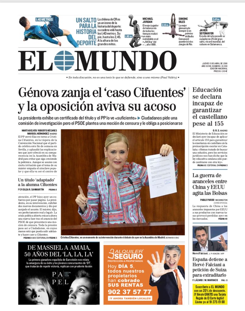 En todo este lío del máster de Cifuentes no os olvidéis del papelón de la Universidad Rey Juan Carlos. Supongo que su prestigio está en el mismo cajón que el trabajo de la política.