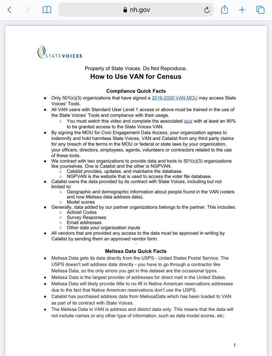 Dear New Hampshire GOP, Was the DNC-owned NGP VAN used by census takers in New Hampshire? If so, was this paid for by NH funds (to sponsor inappropriate data collection and use, and possibly ballot harvesting)?
