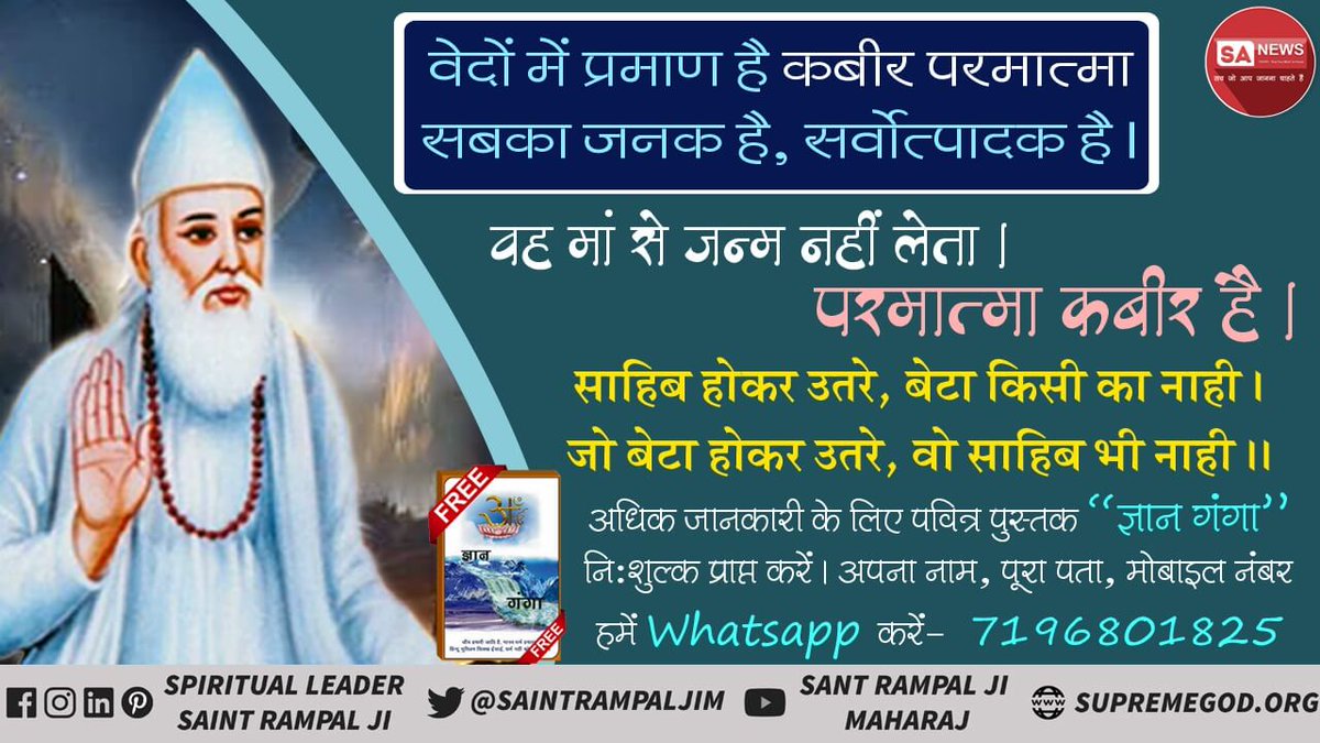 #FridayMotivation ऋग्वेद म.9 सूक्त 96 मंत्र 18 में प्रमाण है कि पूर्ण परमात्मा कविर्देव तीसरे मुक्ति धाम अर्थात् सतलोक में रहता है,जहाँ जाने के बाद मनुष्य का फिर जन्म-मरण नहीं होता है। Sant Rampal ji देखें साधना TV शाम 7:30@PMOIndia@AmitShah@ndtvhttps://www.pscp.tv/w/b0-9fTFwempNT1ZNcVpnUWR8MVBsS1F5Tk1rQXpLRUOwertc3eVnnNohkI0lStMpfcZ1ZxUIjJRFu3hSWU51 …Hvala. Twitter će to iskoristiti za poboljšanje vaše vremenske crte. PoništiPoništi -
