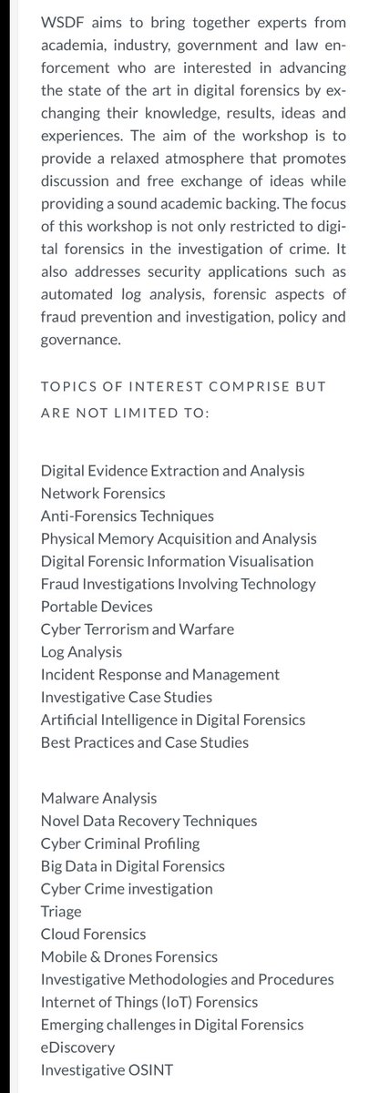#DigitalForensics (#WSDF2020), in conjunction with#ARES_conference https://www.ares-conference.eu/workshops/wsdf-2020/ …#CyberSecurity#cybercrime#terrorism#CloudComputing#osint#Malware#AI#MachineLearning#BigData#databreach#DataAnalytics#UTSACyber#drone#IoTpic.twitter.com/LveGXLp26R