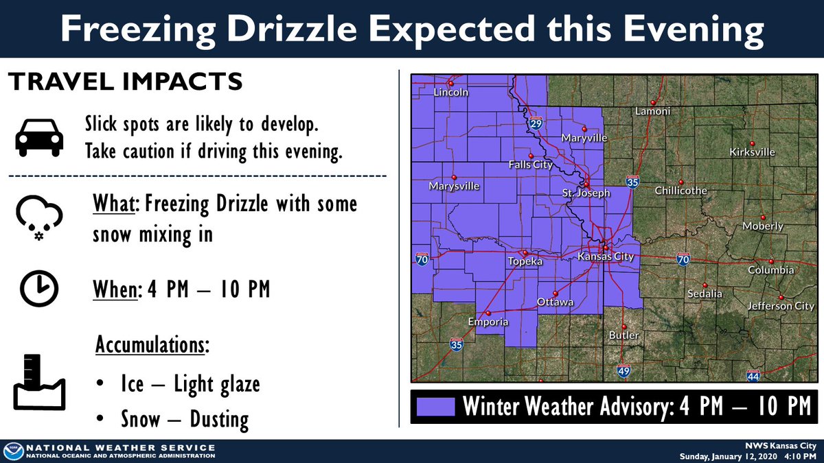 We know there is a lot of excitement in the air, but there is also freezing drizzle. Please help us spread the word to keep everyone who is traveling around the area safe!https://twitter.com/NWSKansasCity/status/1216482714234187776 …