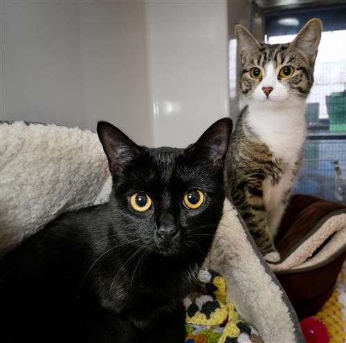 Mabel and Mia are beautiful and only 11 months old. These firm friends are a little timid and have been house cats. They'd suit a quiet home away from busy roads. Their link is.... http://ow.ly/khIq50yaUjP