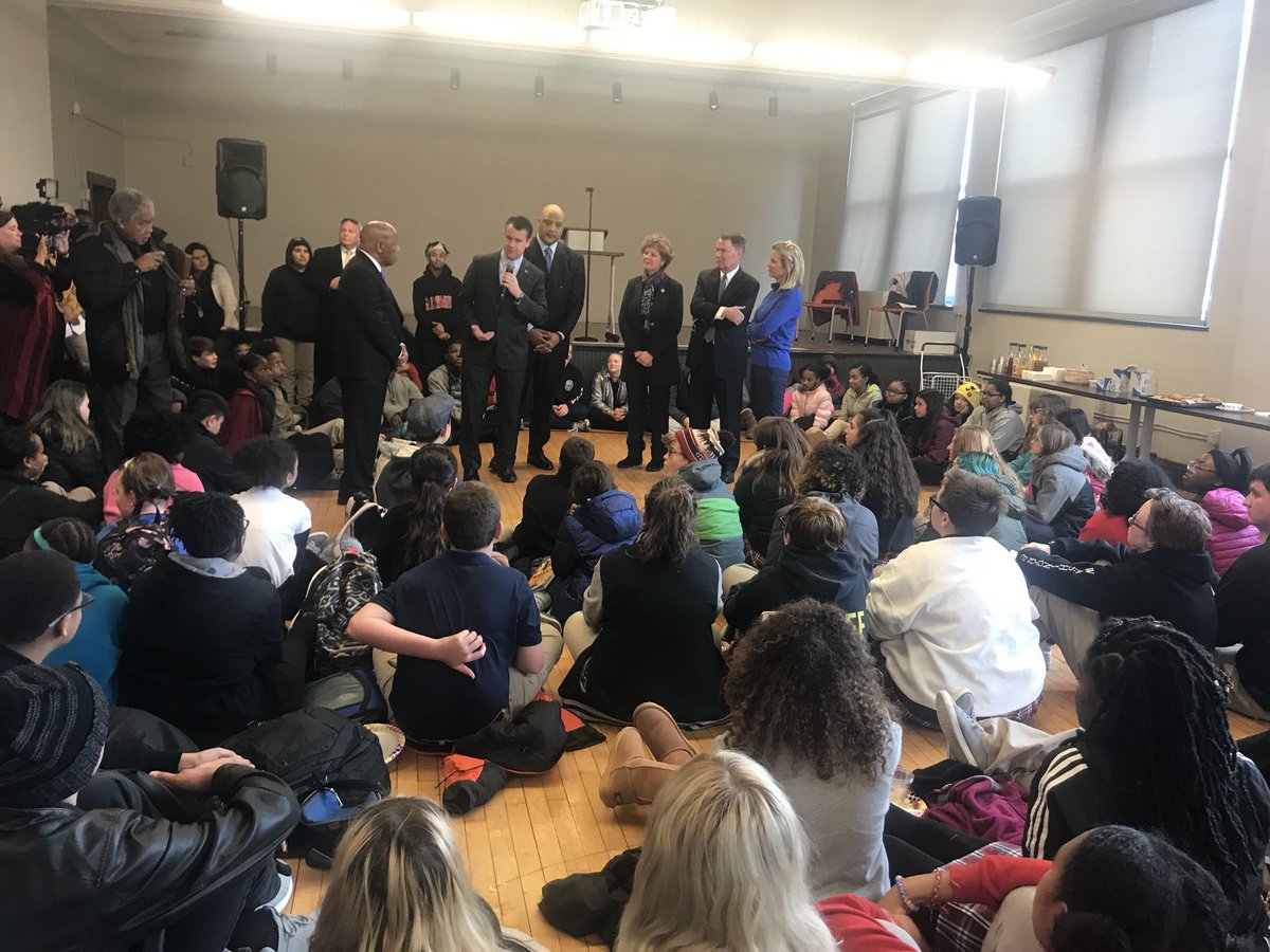 U.S. Rep. Susan Brooks, center, has joined John Lewis, Andre Carson, Joe Hogsett and Kerry Kennedy to talk with students.