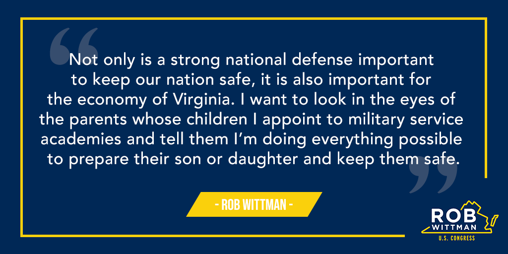 We need a military that not only projects power around the globe but is fully prepared to take on the challenges we ask of them in order to keep our nation secure. Not only is a strong national defense important to keep our nation safe, it is also important for the economy of VA.