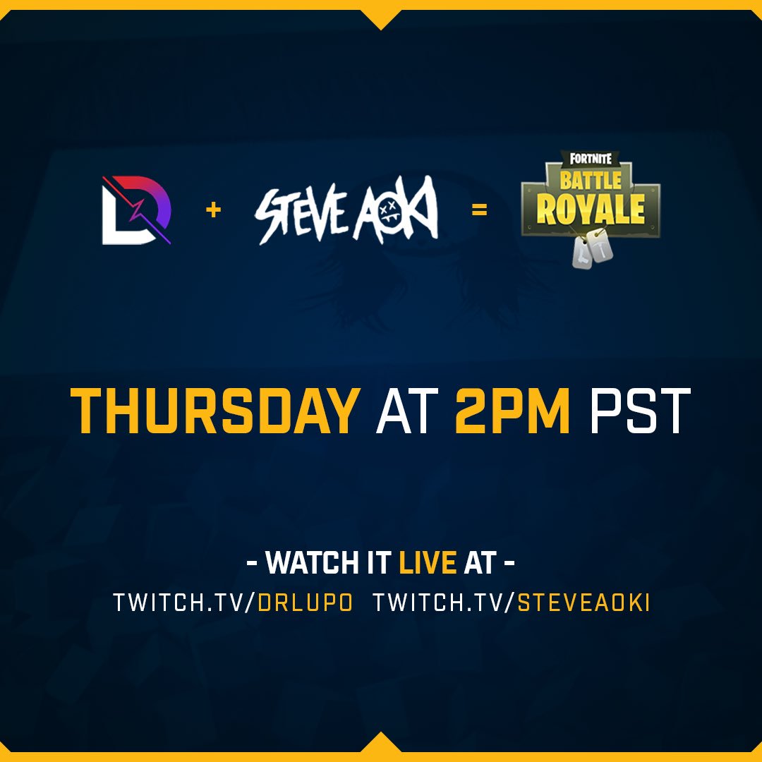 @steveaoki thanks for crushing it in#clt tonight!@GoingRogueGG@ReKTGlobal love all the support you give to us as an investor! Look forward to the next@DrLupoOnTwitch@FortniteGame duos!pic.twitter.com/tyaKFJISrv