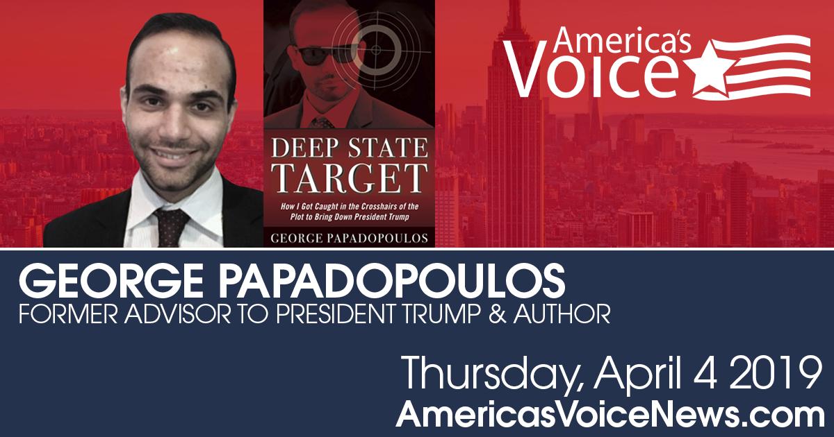 Our next guest on America's Voice Live is @GeorgePapa19! He was a member of @realDonaldTrump 2016 Foreign Policy Advisory Panel, and is the author of “Deep State Target." Tune in with our hosts, @TheHwCon and @JesseKellyDC at 2:00PM ET on http://americasvoicenews.com/ pic.twitter.com/bvnJqoNGmu