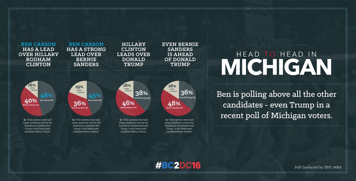 @RealBenCarson Ben, it's time to join forces with Trump and take back this country and the great state of Michigan.Thanks. Twitter will use this to make your timeline better. UndoUndo