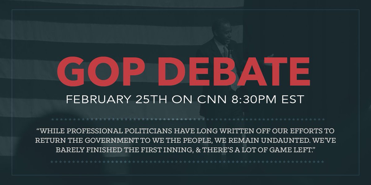 @RealBenCarson looking forward to the debate. Keep going, you can do it!#GOPDebate