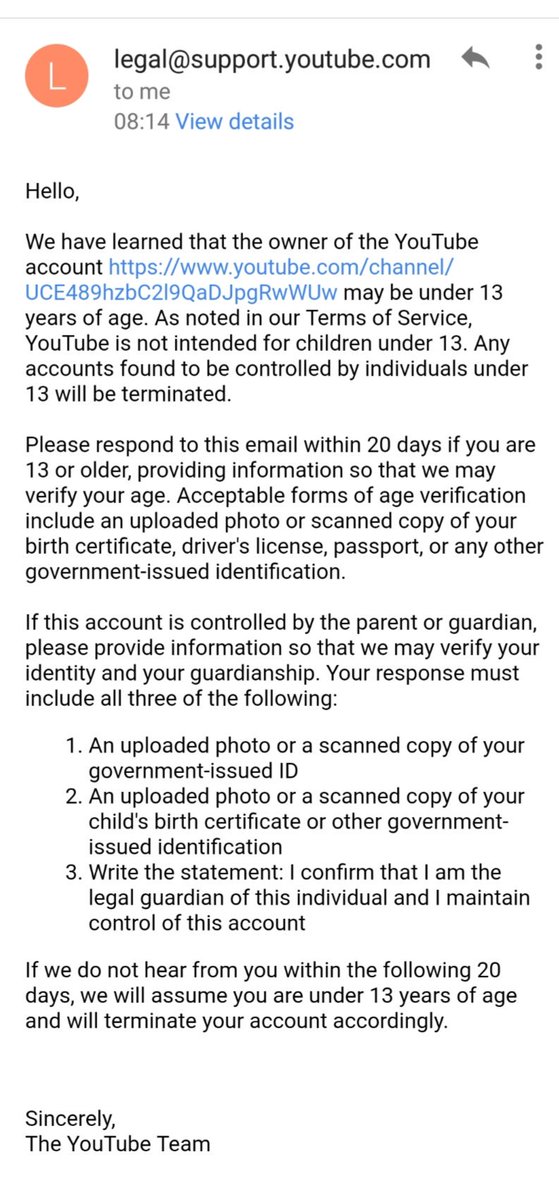 Should I be thinking this is funny and taking it as a compliment? @TeamYouTube, how are you going to protect my identity? Desperate times call for desperate measures. First privacy, then copyright of no copyright material, then age. Did you get overwhelmed @YouTube?pic.twitter.com/idKHspJuHO