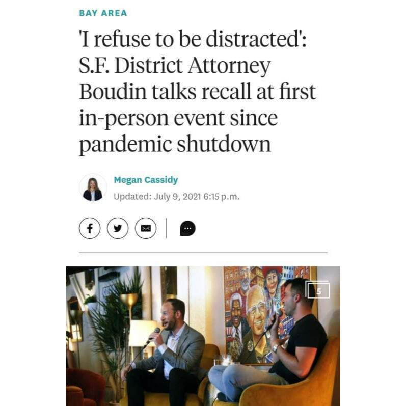 SF DA @ChesaBoudin refuses to be distracted by the dishonest recall effort. Wealthy Republicans are trying to overturn the results of his free and fair election. To stop them, we need everyone to #StandWithChesa and tell voters about his important work: https://www.mobilize.us/chesaantirecall/event/399637/?utm_source=tw20210715 …pic.twitter.com/MOD7bhAEZ8