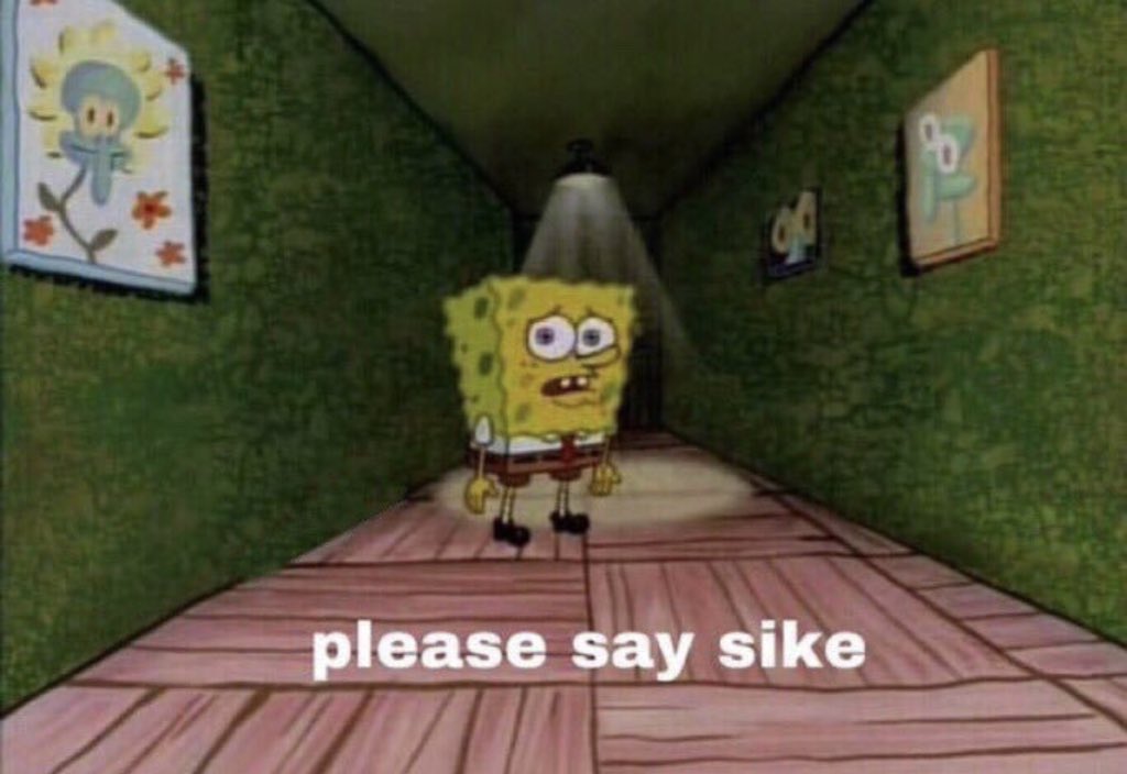 spongebob with a caption saying please say Sike