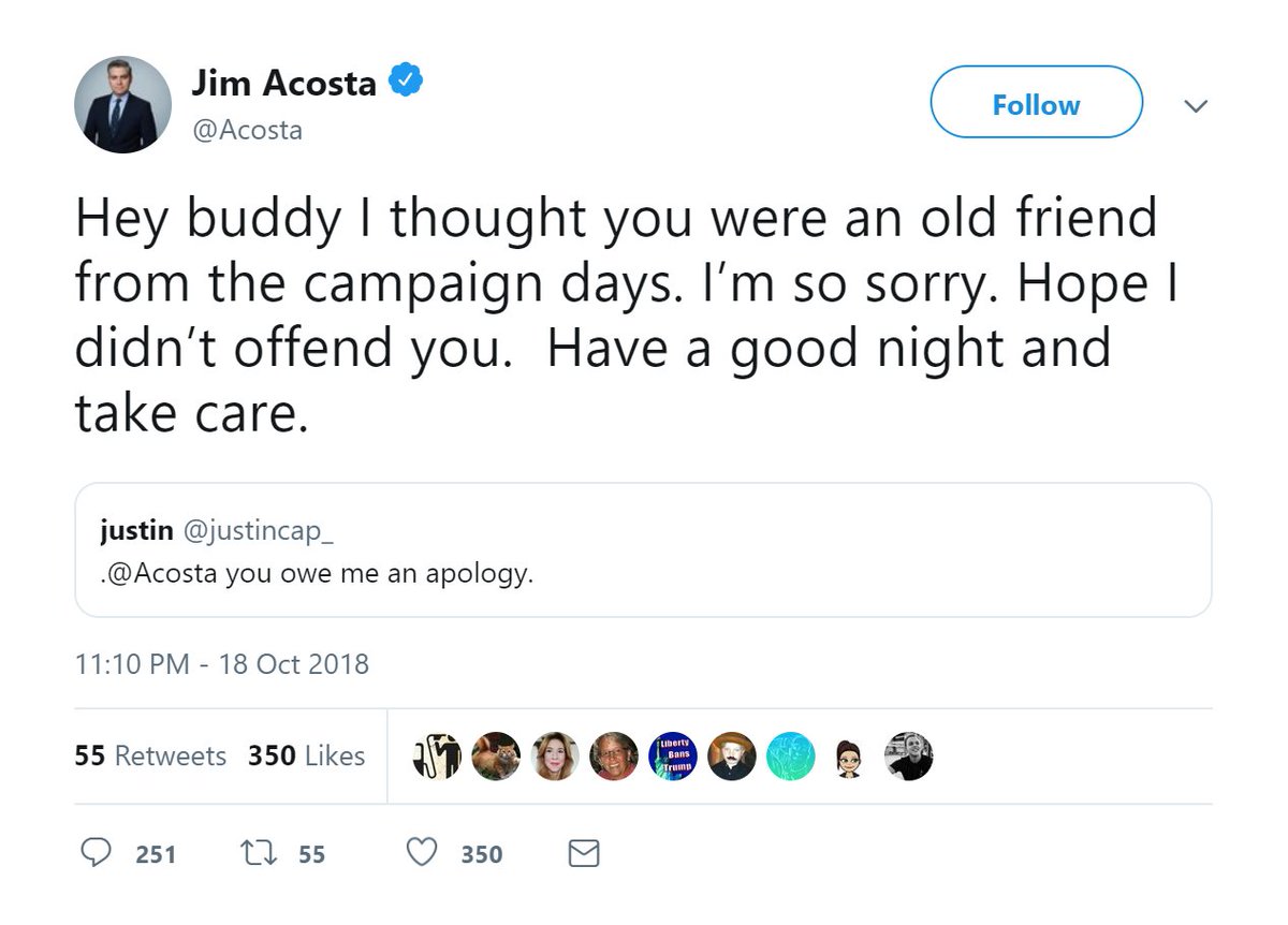 I don’t get it why Acosta using f word in a private message is damaging CNN’s brand but the President mocking Dr Ford at public rally is just Trump being Trump