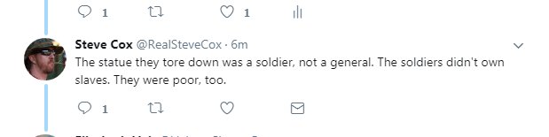 The statue they tore down was a soldier, not a general. The soldiers didn't own slaves. They were poor, too.