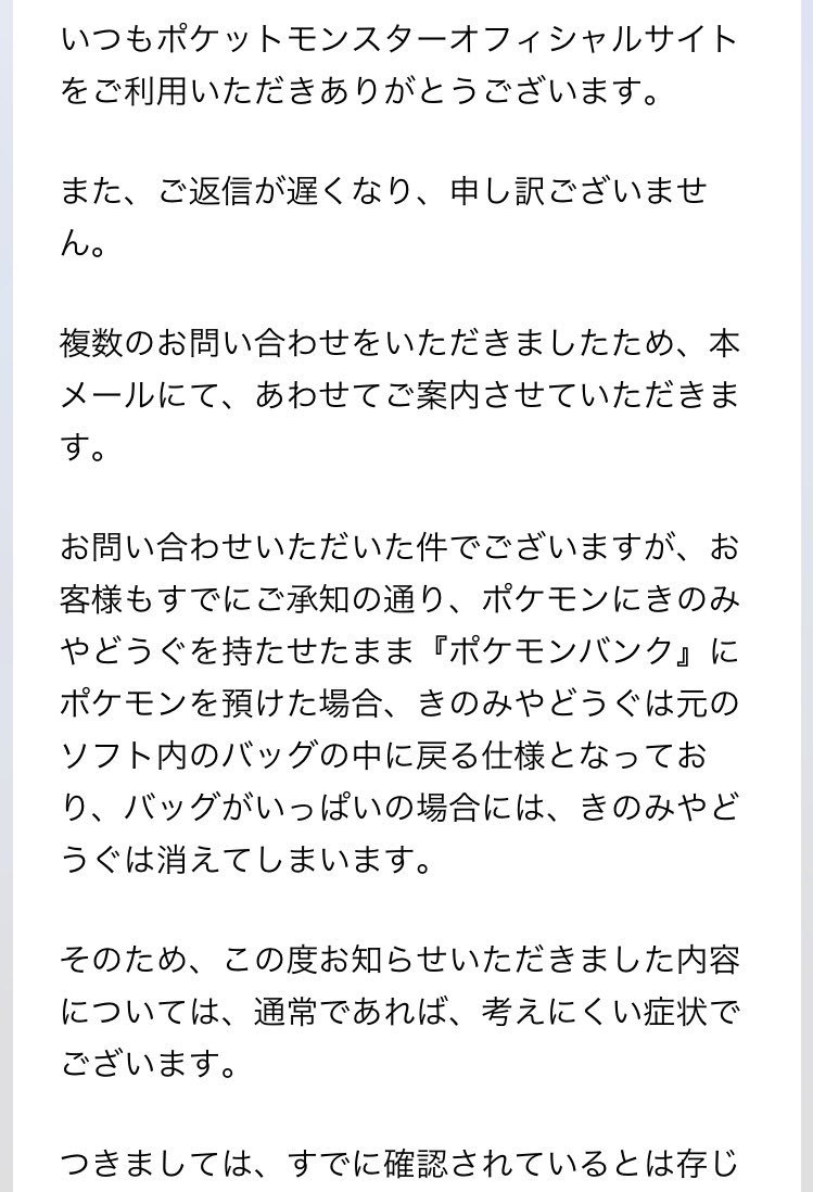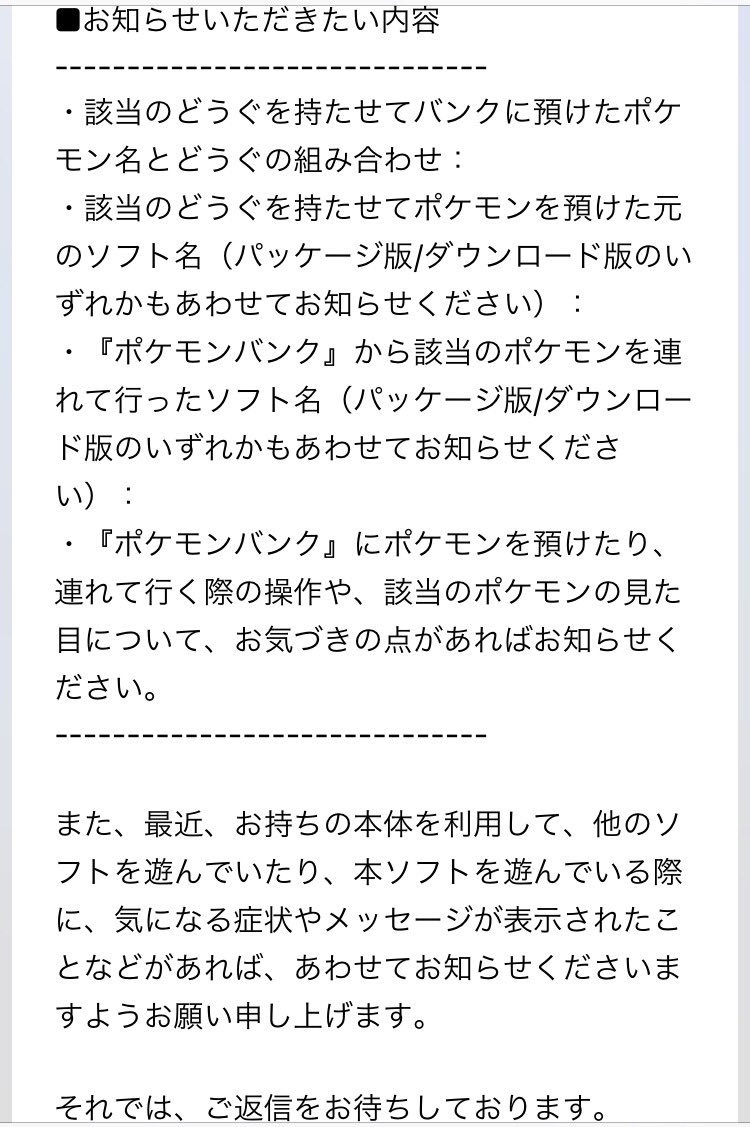 ゲームフリークさんからの返信あった内容のっけますー これに返信したので次の返信待ちでですーpic.twitter.com/Suodhy8QtD