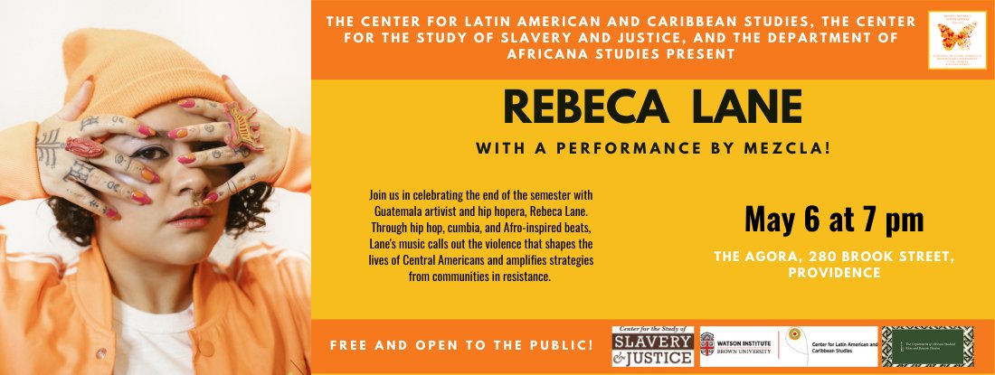@RebecaLane6 w/@BrownUniversity's Mezcla. Lane brings to light the causes of migration, violence against women and girls, genocide in Guatemala, and more. Cosponsored by@CLACSBrownU,@SlaveryJustice, and Africana Studies. http://bit.ly/3EMO2Ti pic.twitter.com/e0b34Aqy5w